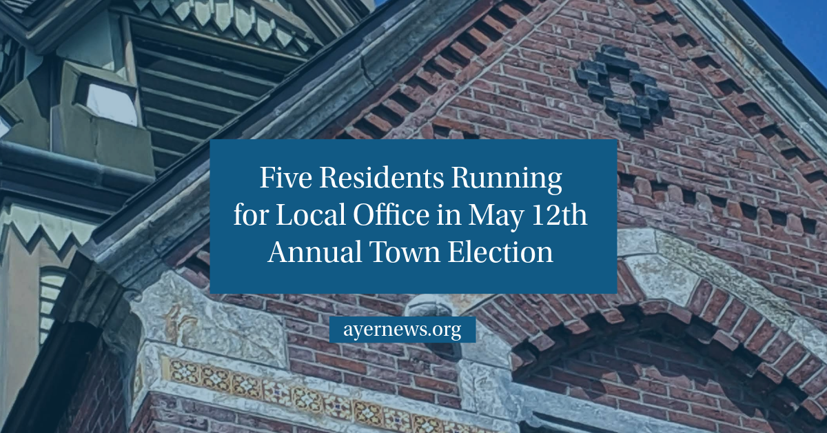 We share an update on the May 12, 2026 election. Five residents have returned nomination papers to have their names placed on the ballot. Residents who are interested still have time to learn about potential opportunities to serve, across the Planning Board, Ayer-Shirley Regional School Committee and other seats.