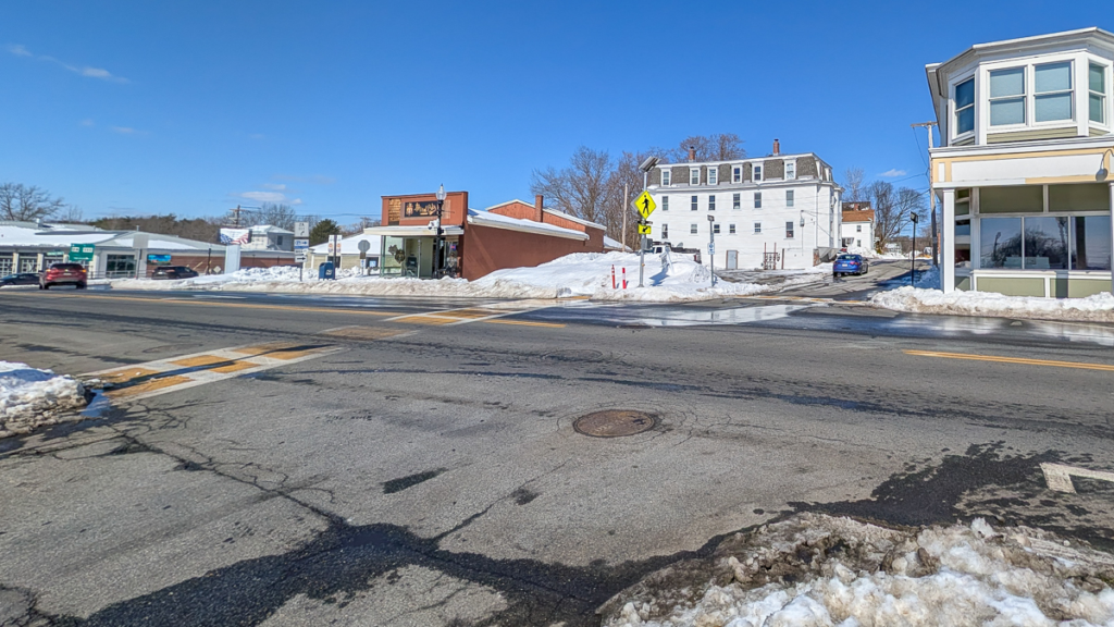The Planning Board opened the public hearing for 63 Main Street, where the applicant is seeking site plan approval and a special permit for off-site parking. The project falls in the Downtown/Park Street Form-Based Code zoning, which was approved in 2019. This building is proposed next to the brown (former) P.N. Laggis building, where Revival Cutz Barbershop now operates. The Planning Board materials show the applicant plans to remove an existing parking lot.